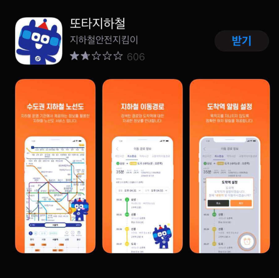 수도권이나 지하철이 있는 곳에서 사는 분들은 지하철 애플리케이션을 많이 써보셨을 거라고 생각합니다. 저 또한 서울에 올라와 산지 15년이 되었지만 아직도 헷갈리고 새로 바뀌는 부분이 많아서 지하철 어플을 자주 쓰는데요. 서울교통공사에서 공식으로 만든 또타지하철을 추천하려고 합니다.