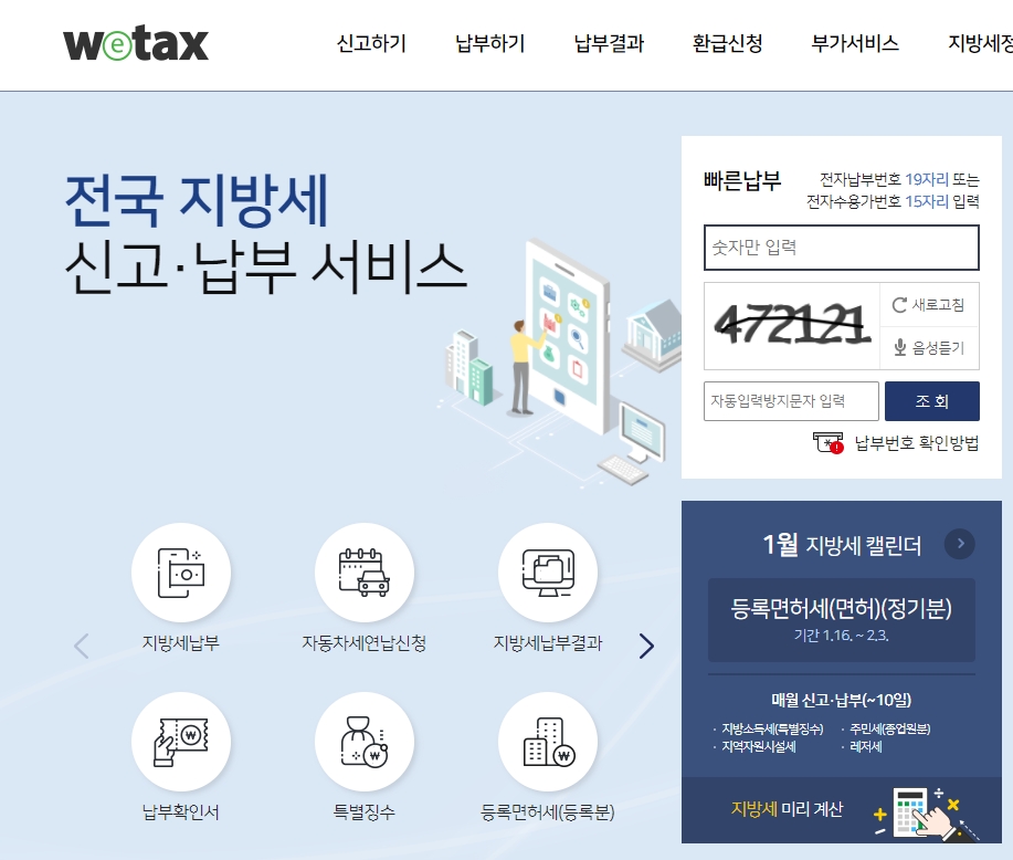 - 서울시를 제외한 전 지역 차량은 PC로 위택스 홈페이지, 스마트 위택스라는 어플을 이용하셔도 됩니다.